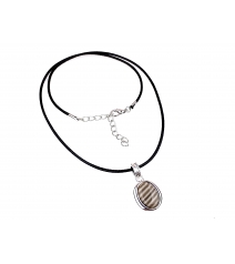Zawieszka z kamieniem naturalnym, polskim Krzemieniem Pasiastym. Kamień został starannie, ręcznie wyszlifowany w naszej pracowni oraz dokładnie spasowany z oprawą. Jakość naszych wyrobów zadowoli nawet najbardziej wymagających klientów. Polski produkt.