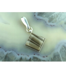 Zawieszka z kamieniem Krzemień Pasiasty. Kamień został starannie, ręcznie wyszlifowany w naszej pracowni oraz dokładnie spasowany z oprawą. Jakość naszych wyrobów zadowoli nawet najbardziej wymagających klientów. Polski produkt