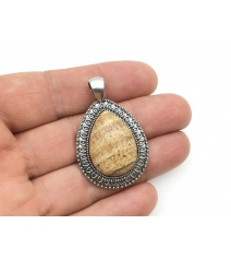 Wisiorek łezka z kamieniem naturalnym Jaspis Krajobrazowy (Obrazkowy, Kalahari). Kamień został starannie wyszlifowany w naszej pracowni i spasowany z oprawą. Jakość naszych wyrobów zadowoli nawet najbardziej wymagających klientów.