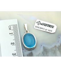 Wisiorek ze szkłem jubilerskim Uleksyt (Kocie Oko) o pięknym błękitnym kolorze, w całości wykonany ze srebra próby 925.