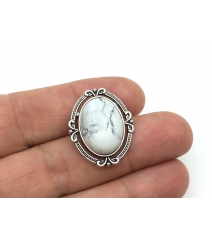 Piękna i elegancka broszka na wzór medalionu, z kamieniem naturalnym Howlit. Idealna do jesiennego płaszcza lub szalika. Kamień został starannie wyszlifowany w naszej szlifierni i idealnie spasowany z oprawką. Jakość naszych produktów zadowoli nawet najbardziej wymagających klientów.